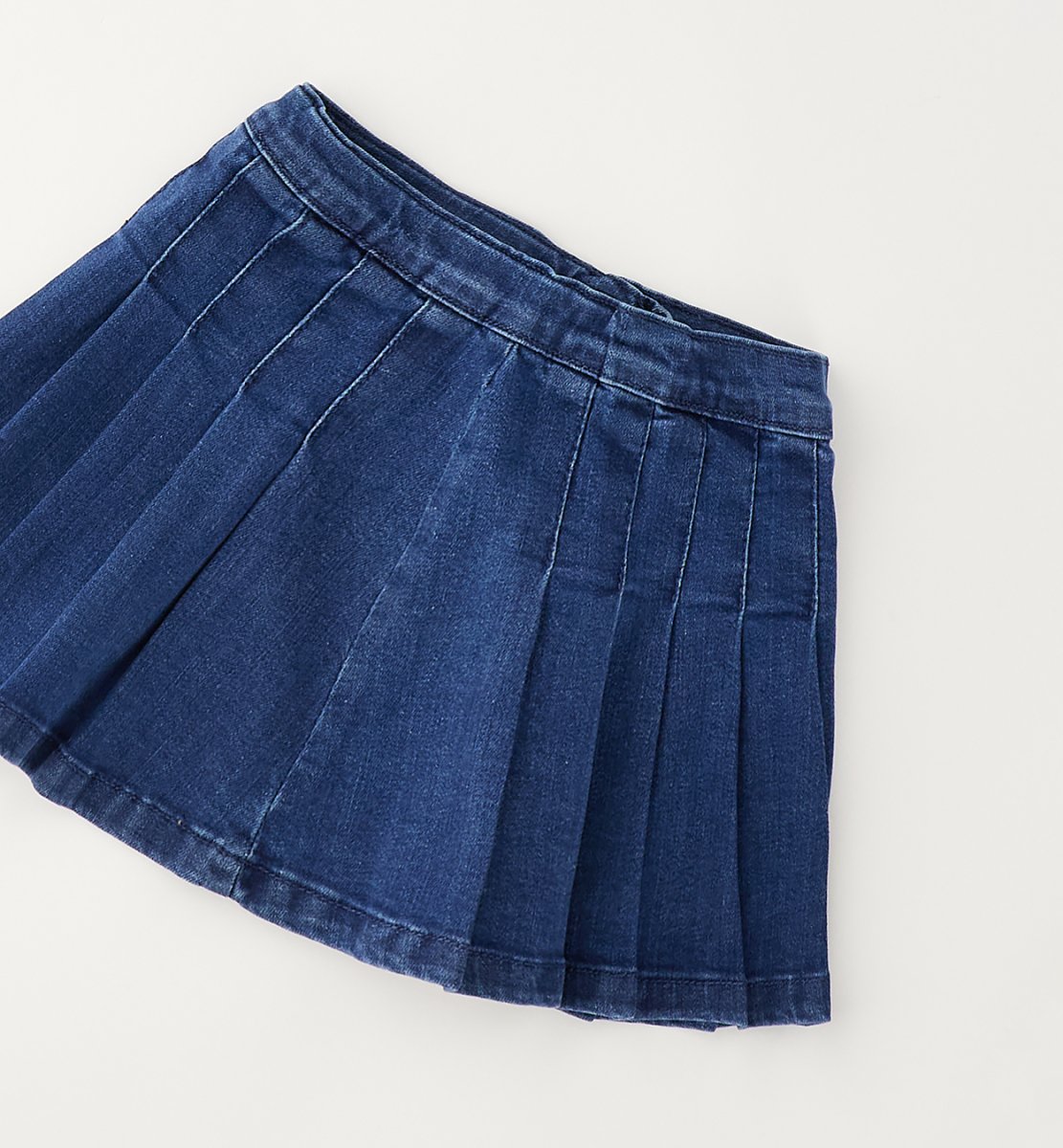 Gonna denim Sarabanda, chiusura con bottoncino effetto plissรจ.