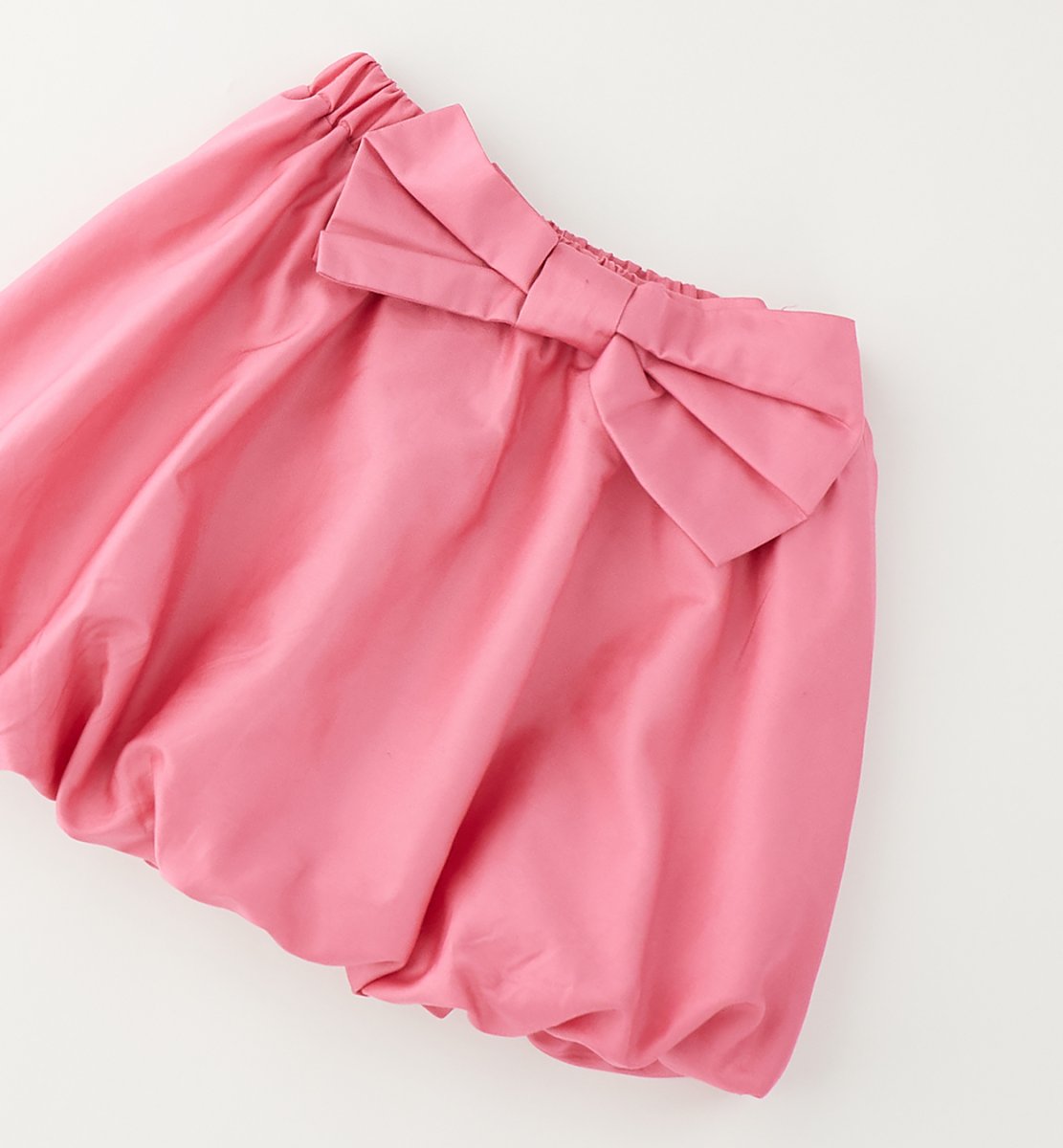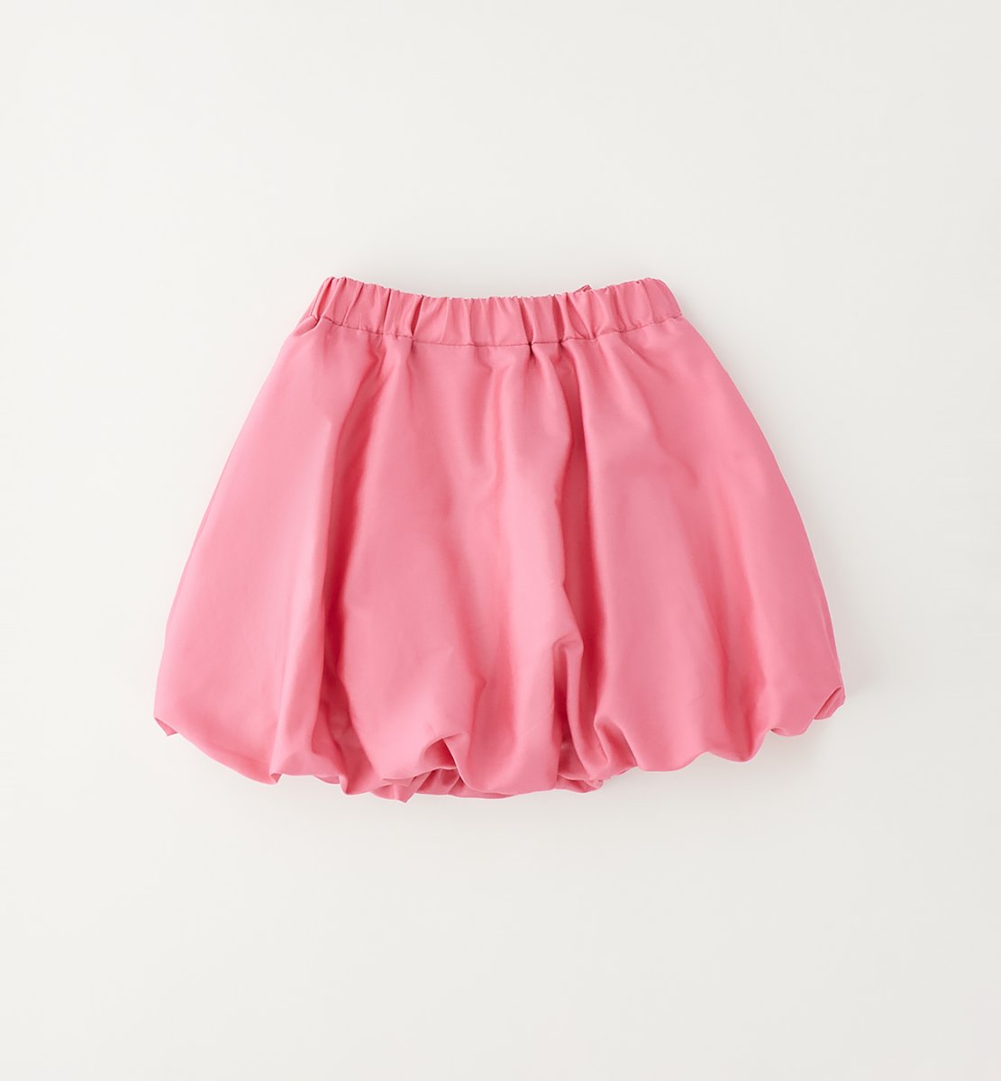 Gonna a palloncino in cotone colore fuxia con applicazione fiocco ed elastico in vita.
