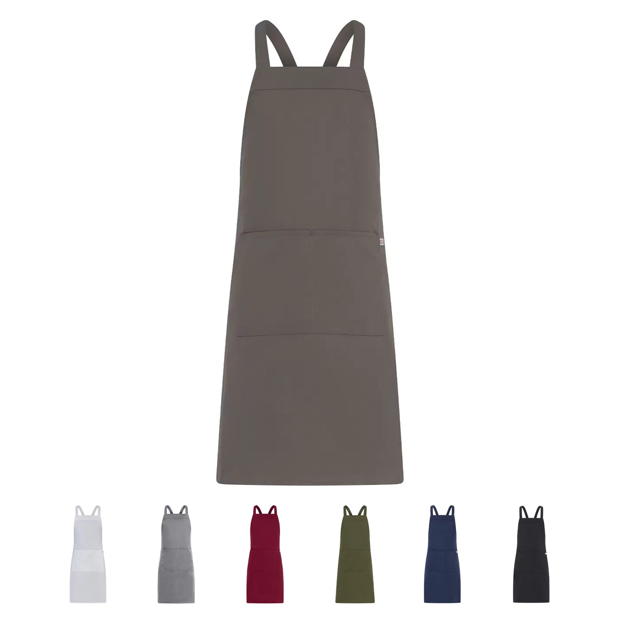 Il grembiule Mykonos รจ un modello unisex, realizzato in gabardine, composta al 65% di poliestere e al 35% di cotone, con un peso di 200 g / mยฒ, ideale per i lavaggi alle alte temperature. Presenta una pettorina di ampie dimensioni con 2 lacci che regolano il collo e lโallacciatura in vita attraverso un anello in ottone anticato e unโampia tasca centrale. Disponibile nei colori bianco, grigio chiaro, tortora, bordeaux, verde militare, blu e nero. Scheda tecnica e lavaggi: Mykonos ย ย Video: Guarda