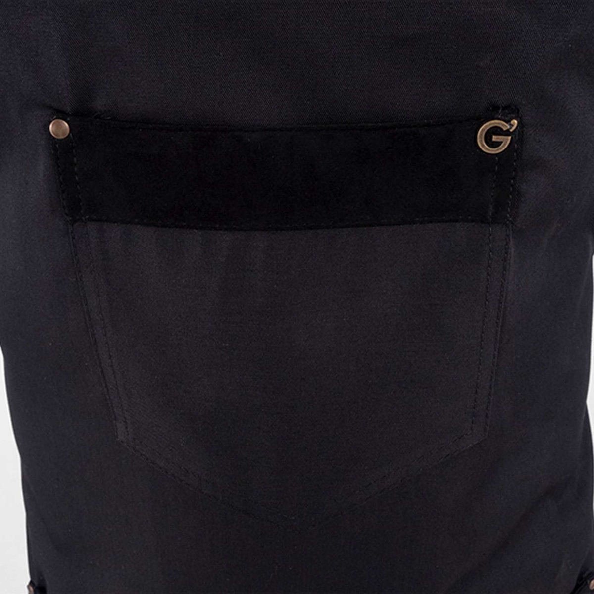 Il grembiule con pettorina Ryan, moderno e di sicuro effetto estetico, unisce essenzialitร e cura dei dettagli in un unico capo. Questo grembiule da lavoro (sala, locali e pub, cucina) dalle dimensioni ampie ha una allacciatura regolabile mediante una vela in ottone anticato, una grande tasca centrale divisa da unโimpuntura a due aghi e una tasca sul centro della pettorina. Completamente ribattuto con impunture a due aghi, รจ impreziosito da diversi rivetti posti come ancoraggio sulle tasche. Il materiale รจ un resistente poliestere misto cotone, impreziosito da inserti di alcantara in tinta. Le due versioni disponibili sono in nero o…