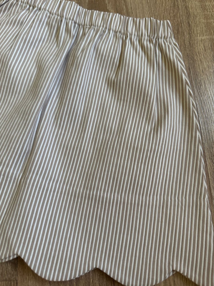 Minigonna in cotone, rigata bianca e beige, forma a nuvola