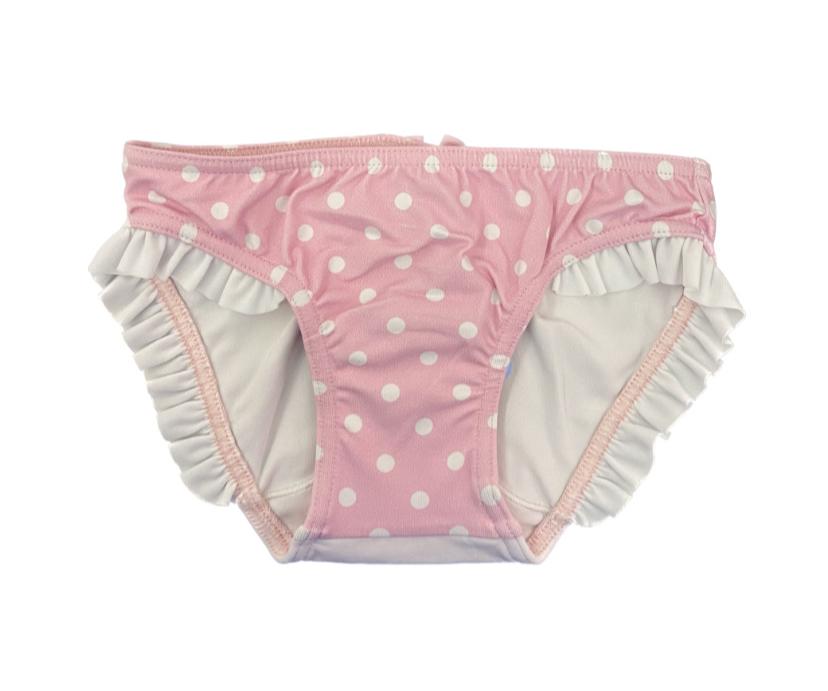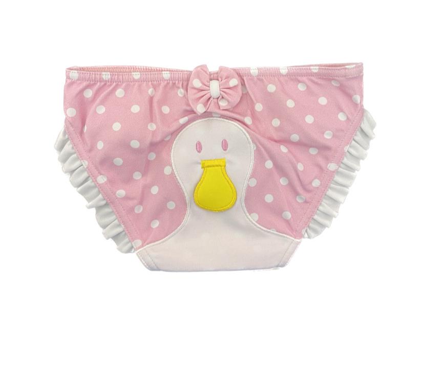 Mutandina costume rosa con pois bianchi e ricamo oca