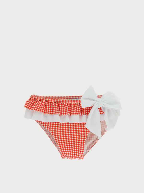 Mutandina costume a quadratini rossi e bianchi con balza e fiocchetto