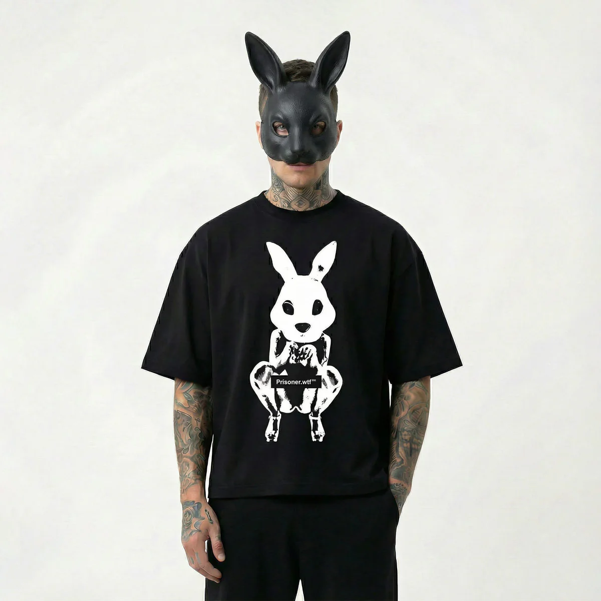 • Provocative Bunny Artwork – Bold statement graphic on deep black base