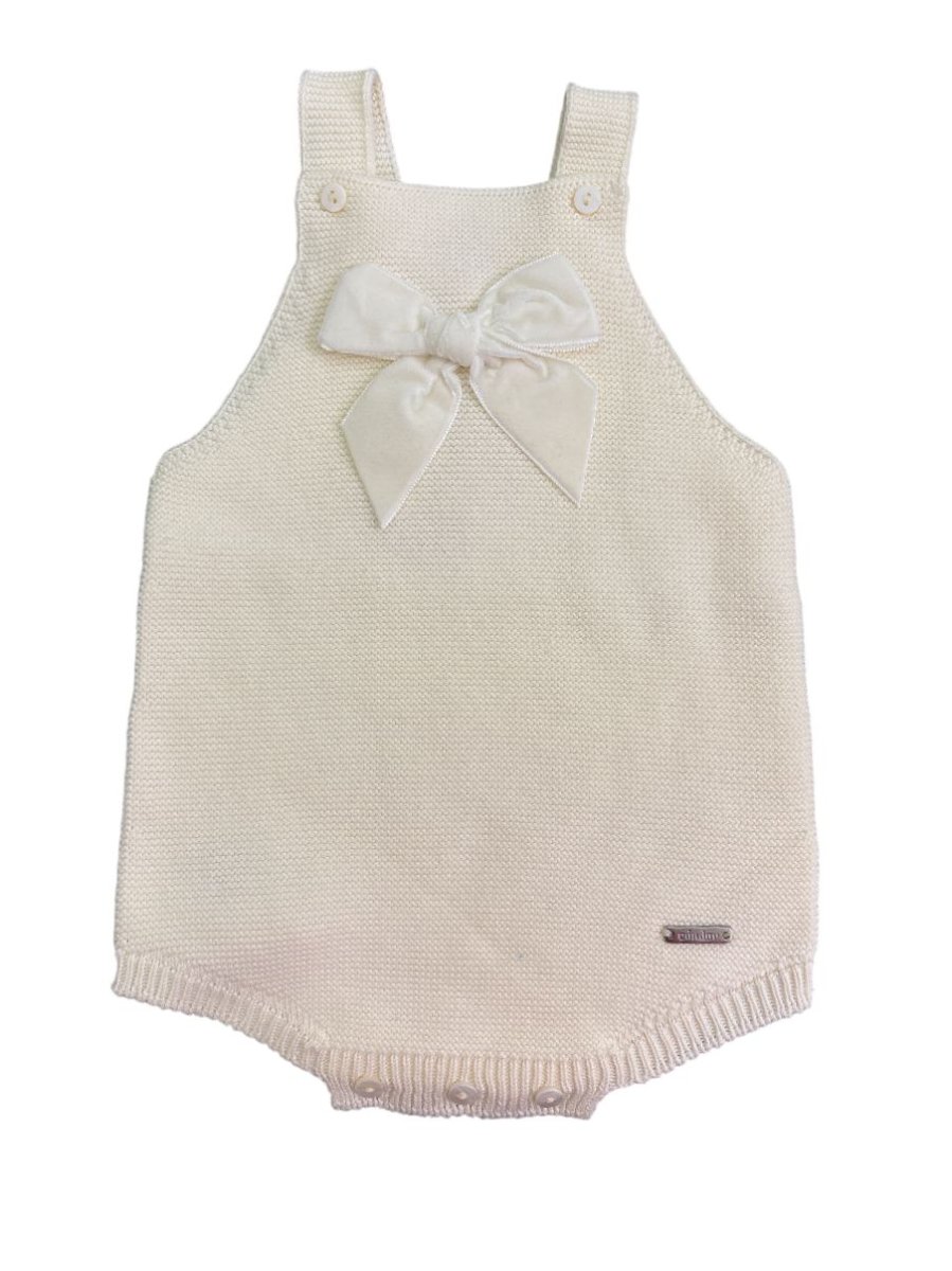 Pagliaccetto 100% cotone, colore panna con fiocco in velluto sulla parte anteriore