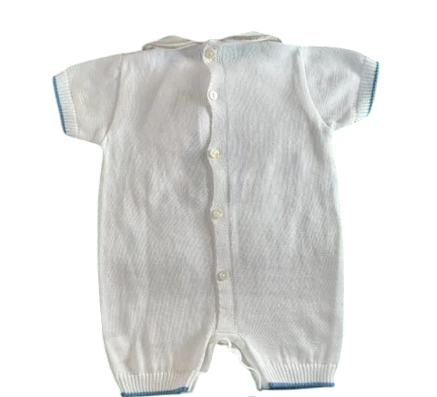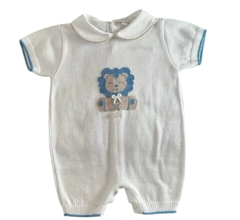 Pagliaccetto Primodรฌ 100% cotone in filo di scozia made in Italy,colore bianco con soggetto leoncino blu denim-tortora