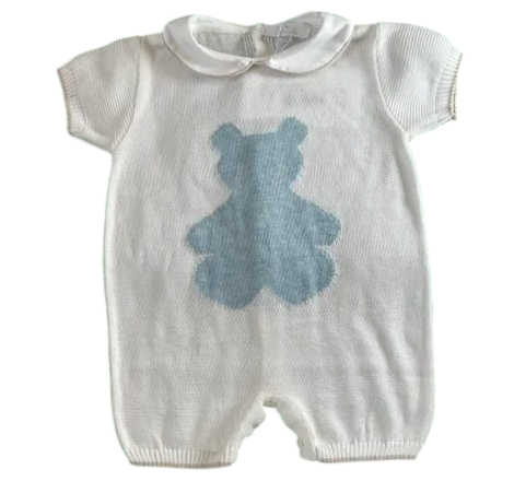 Pagliaccetto Primodì 100% cotone in filo di scozia,color bianco con soggetto orsetto celeste