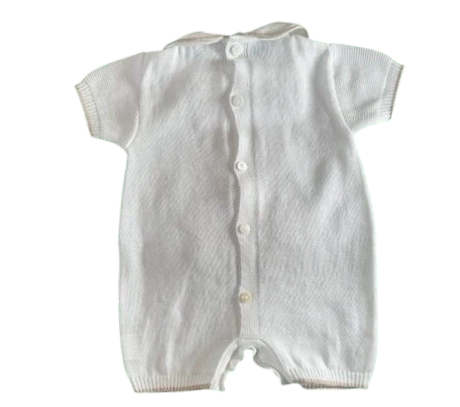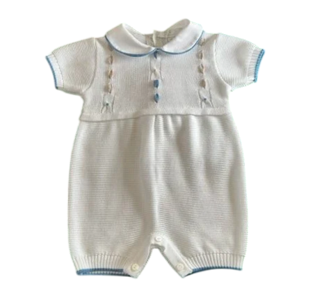 Pagliaccetto Primodì 100% cotone in filo di scozia, colore bianco con trecce bicolore blu e tortora