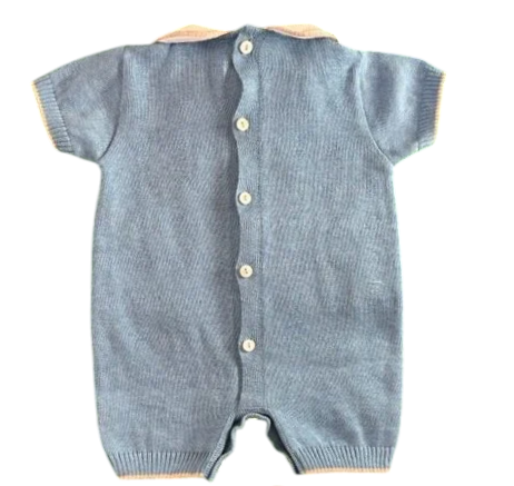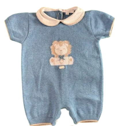 Pagliaccetto Primodì 100% cotone in filo di scozia made in Italy,color denim con soggetto leoncino bianco tortora