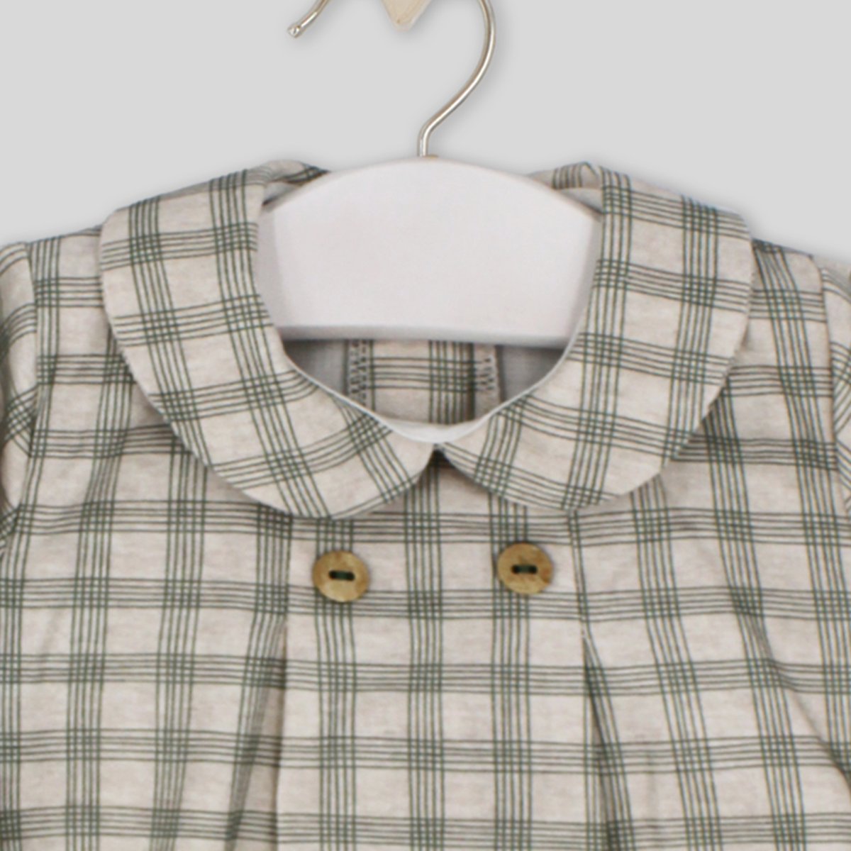 Pagliaccetto Rapife colore verde con fantasia principe di galles e bottoncini in legno.