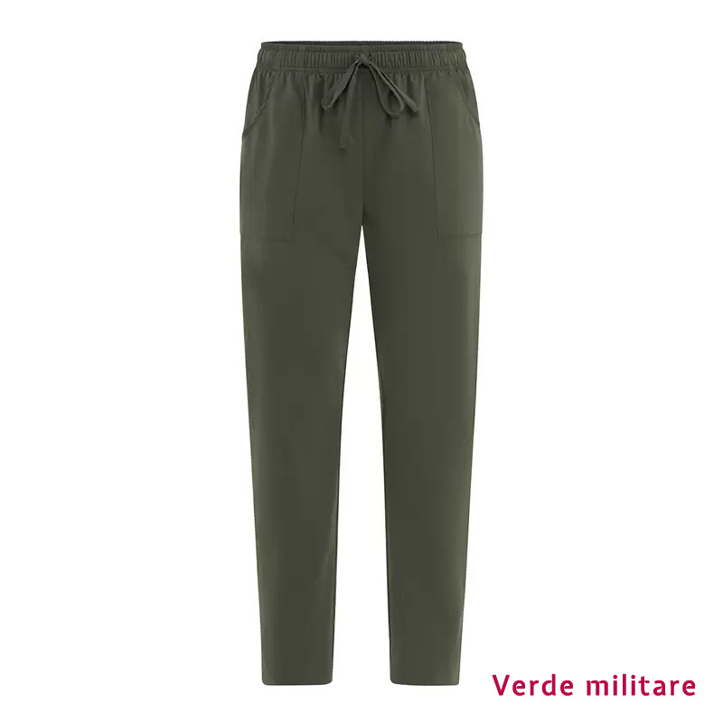 Il pantalone Alan รจ un articolo versatile, adatto a diversi ambienti, come spa, studi medici ed ho.re.ca.ย ร stato rinnovato, utilizzando il nuovo G-TECH PRO, un tessuto dalle incredibili performance: antibatterico, anti-odore, traspirante, lavabile ad alte temperature, resistente agli spruzzi di candeggina, elastico, si asciuga velocemente ed รจ no-stiro. Il pantalone dalla vestibilitร Slim Fit ha un elastico alto di 4 cm ed una coulisse che cinge la vita. Presenta due tasche sui fianchi e una piccola tasca posteriore. Disponibile in diverse varianti colori: bianco, beige, marrone, verde militare, grigio, blu, nero, azzurro, oliva, petrolio, ottanio, fucsia, e prugna, per…