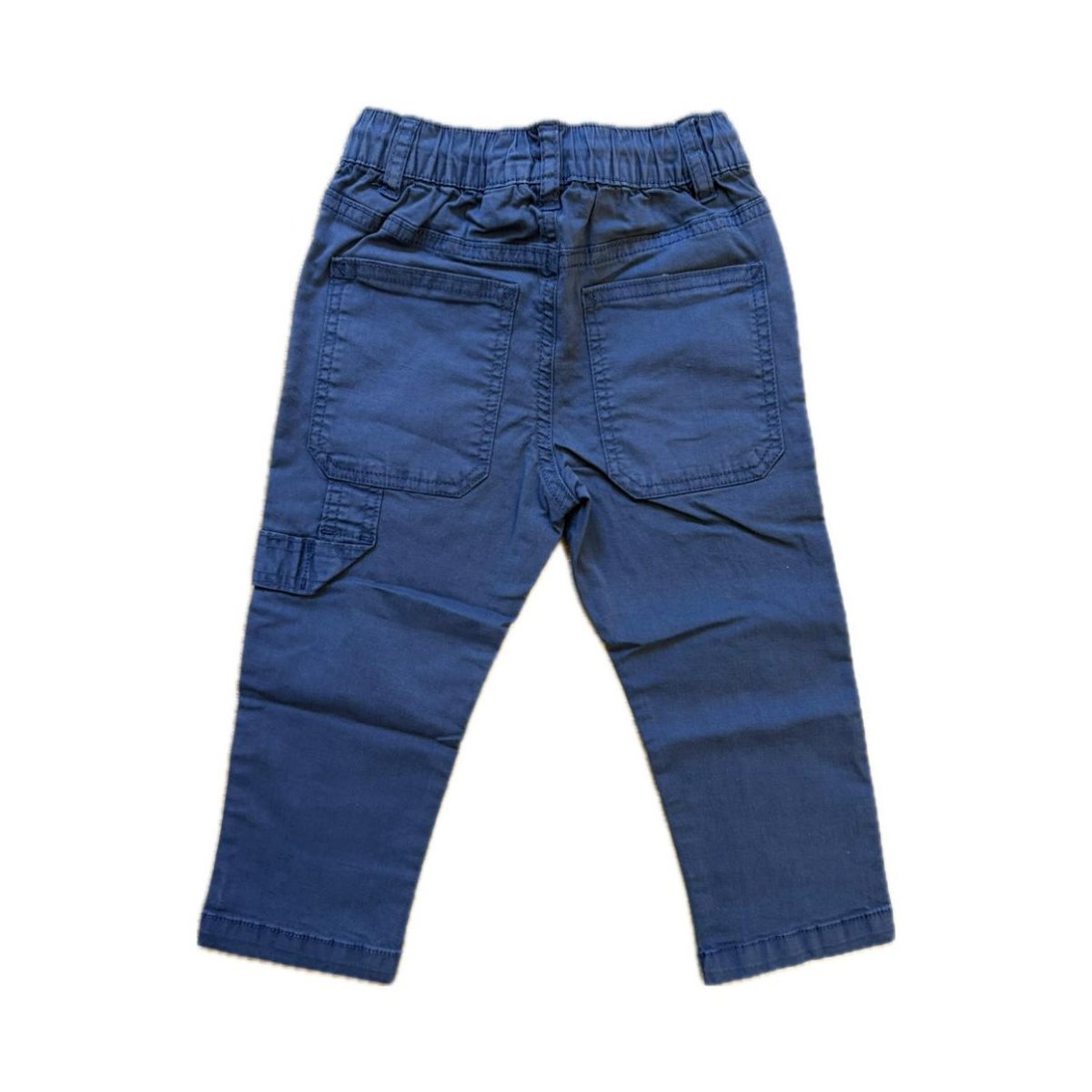 Pantalone in cotone, colore blu, con elastico in vita e coulisse, tasche a filo