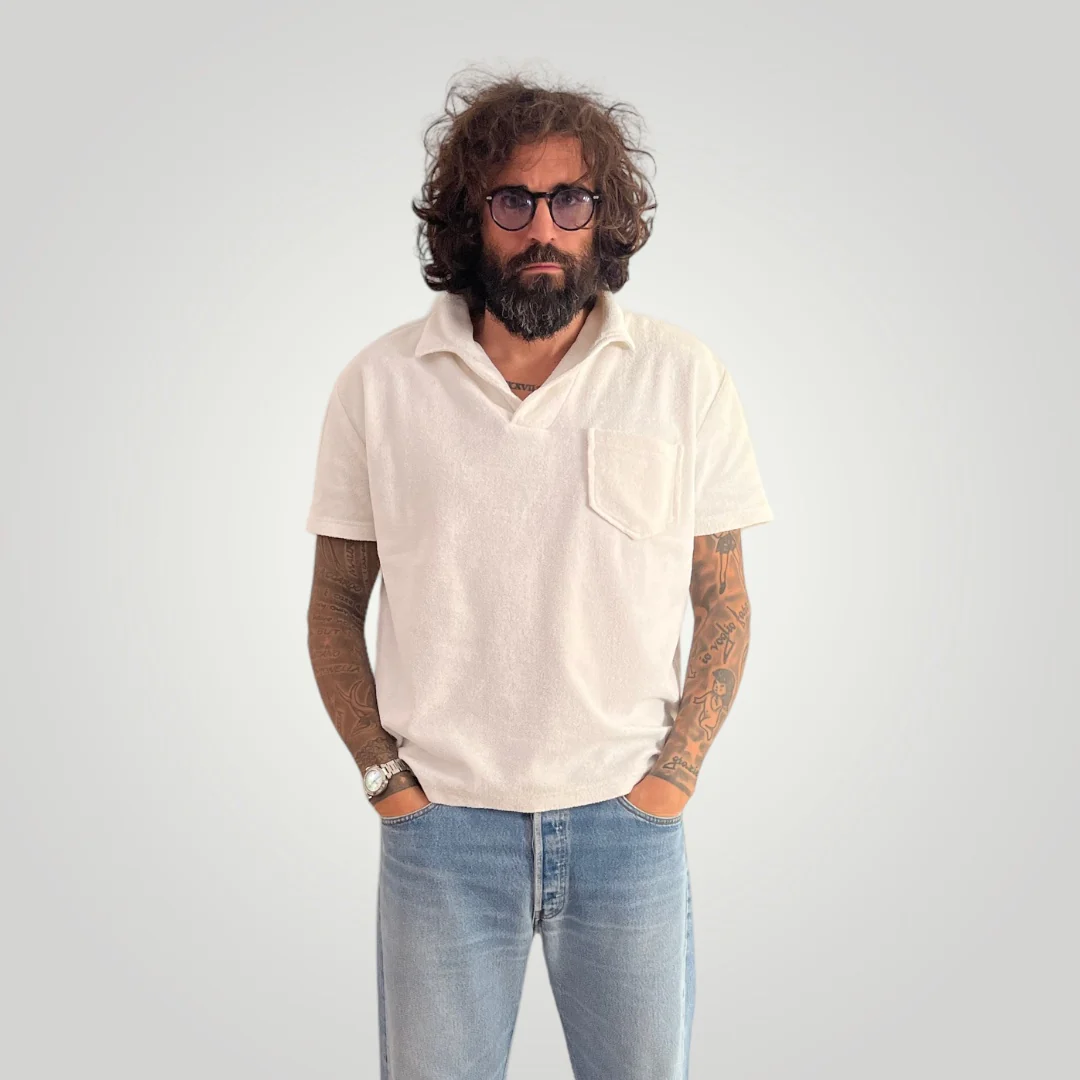 Polo in spugna bianca 100% Cotone Prodotto Vintage