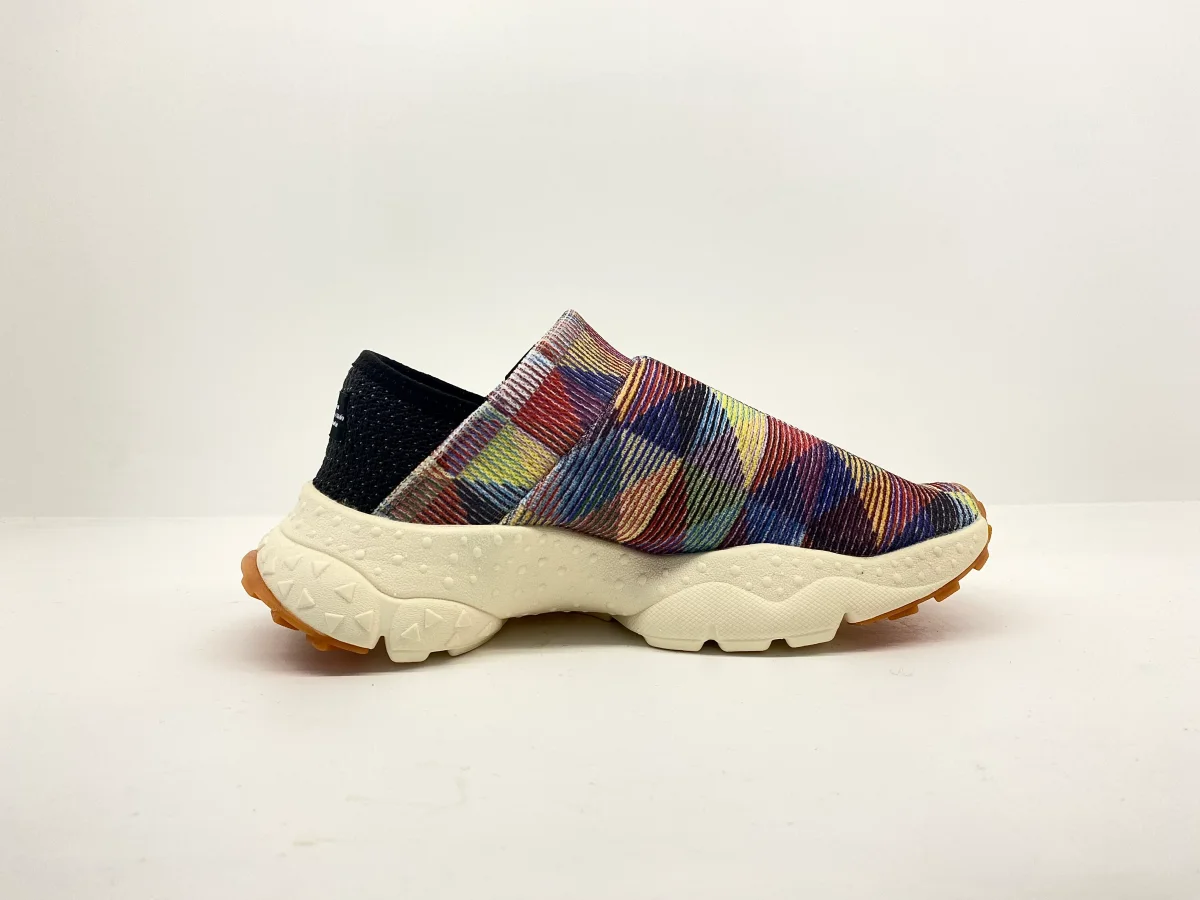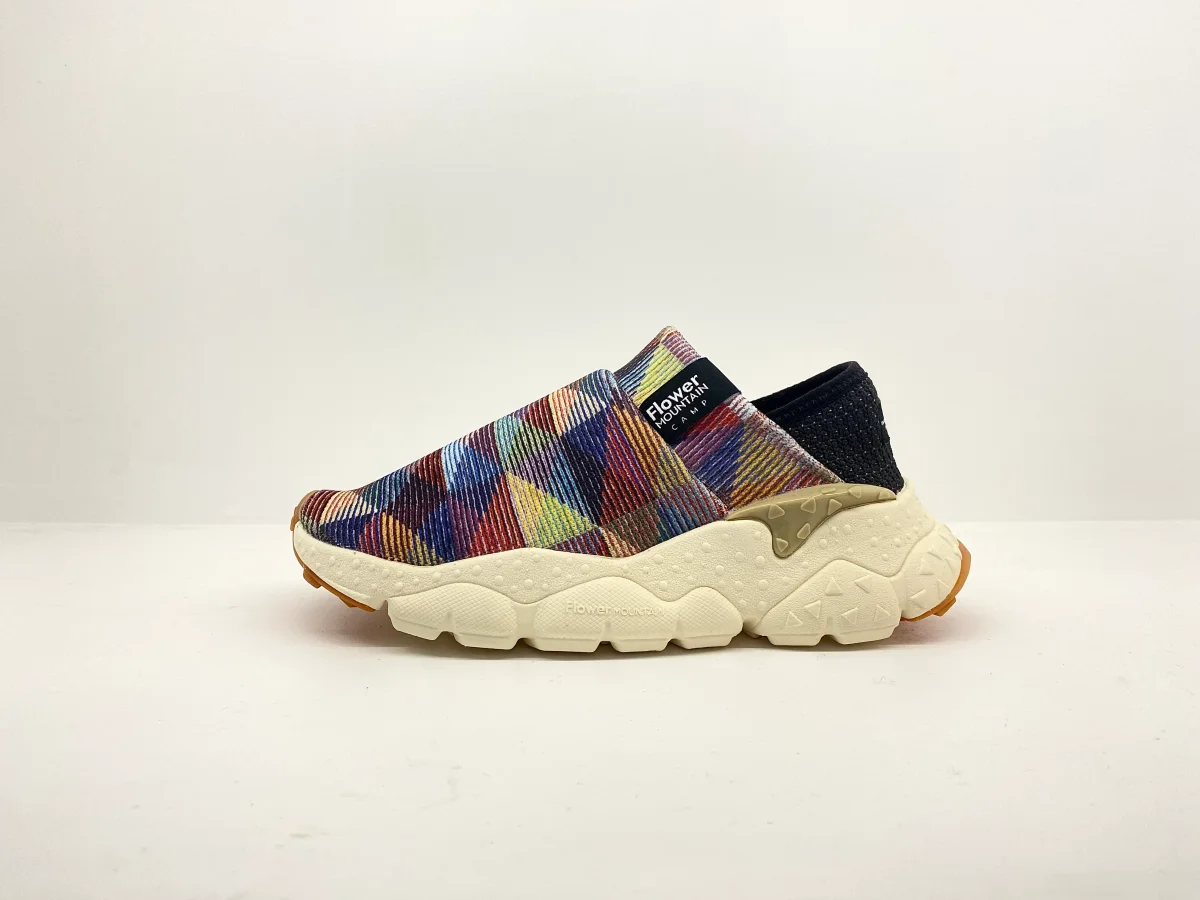 Sneaker slip on con tomaia in tessuto tecnico. Tallone abbassabile. Soletta interna in sughero antibatterico, fondo in gomma ultra leggera. Quintessenza dello slow living e dello stile rilassato, la nuova Camp interpreta al meglio il desiderio di funzionalitร e di comfort. La costruzione slip on permette di indossarla con un gesto, con tallone ribassabile per un doppio styling. La tomaia in maglia tecnica รจ decorata da un disegno jacquard dal pattern geometrico. Soletta interna in sughero antibatterico e fondo in gomma ultra leggera, con battistrada personalizzato per un grip perfetto su ogni superficie.