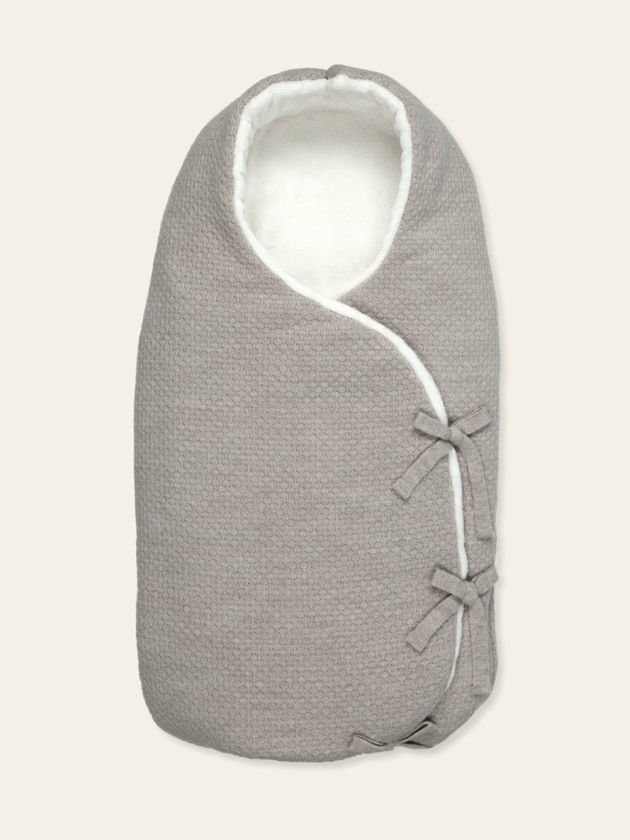 Sacco nanna in misto lana, colore tortora, foderato in pile internamente, con chiusura laterale