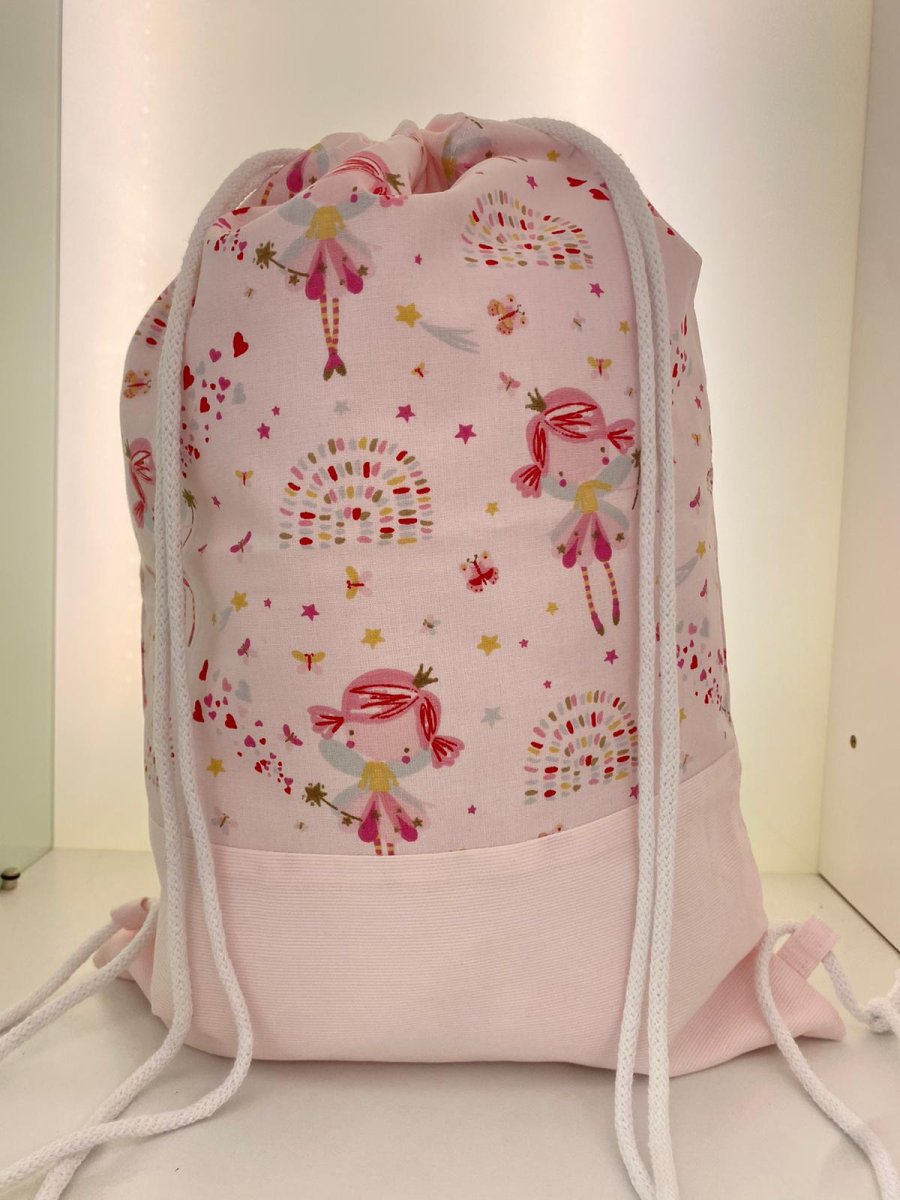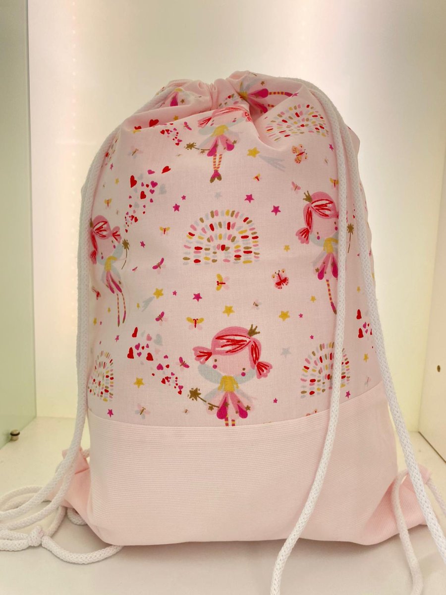 Sacco porta cambio in cotone colore rosa con stampa fatina