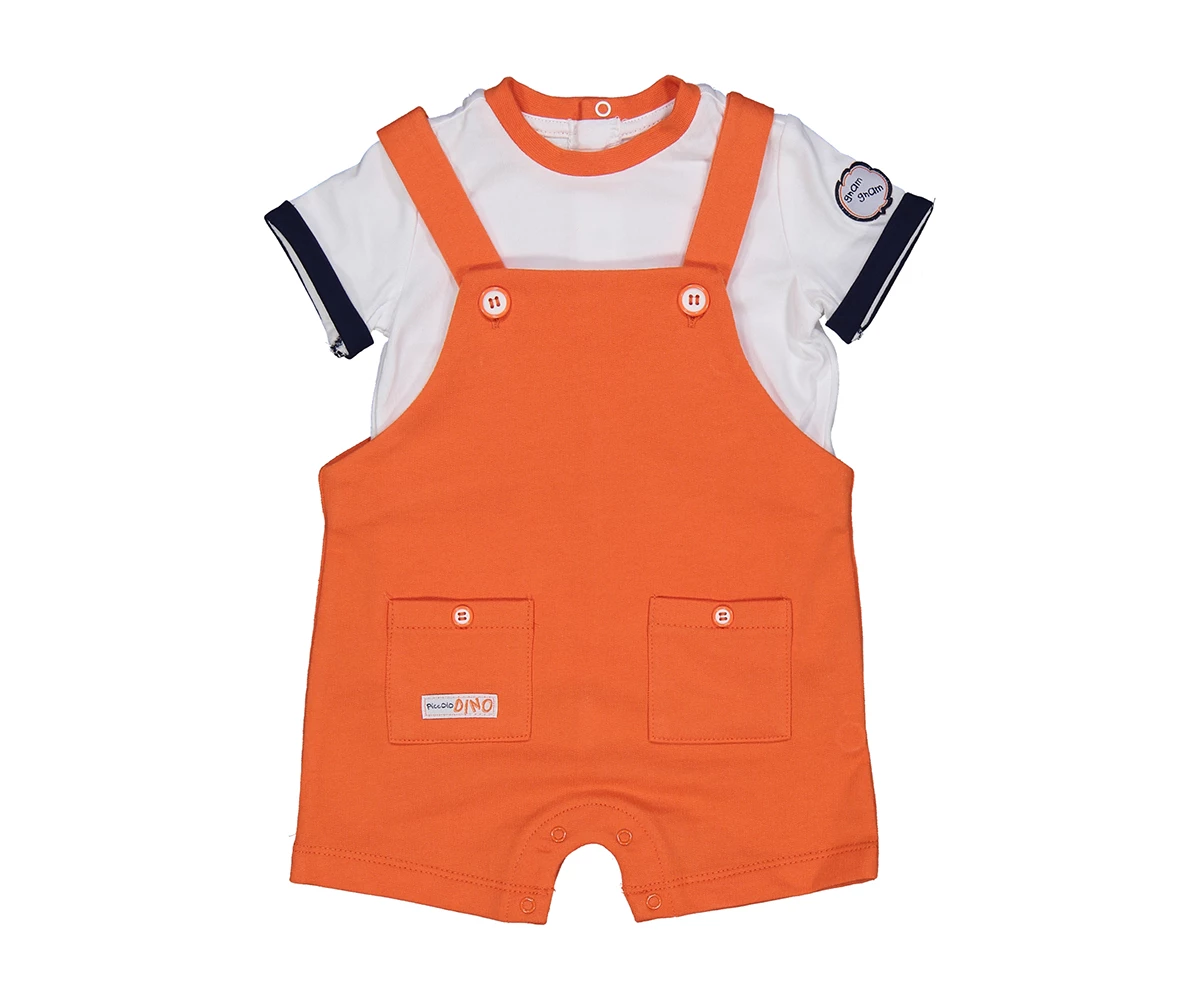 Salopette arancio con t-shirt in cotone bianca Birba
