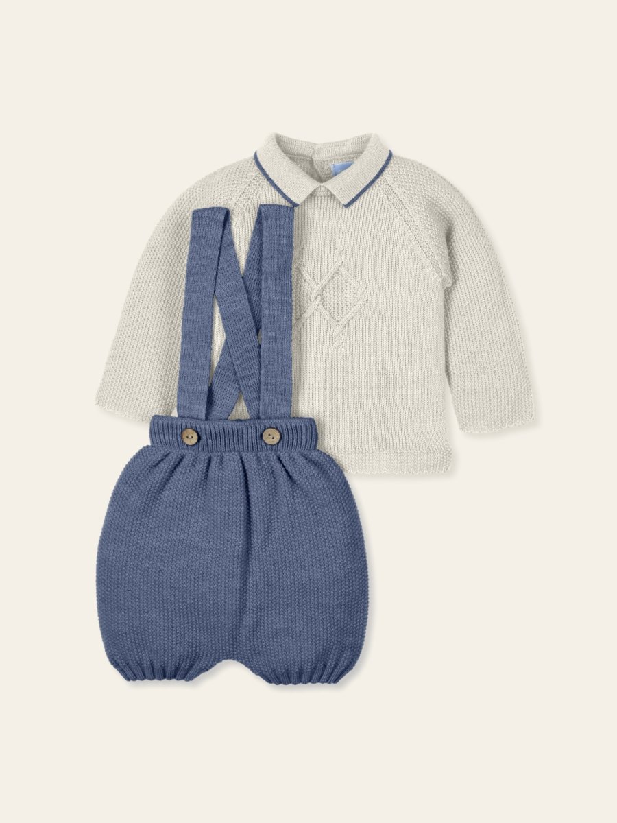 Salopette in misto lana, colore blu notte con polo a manica lunga beige