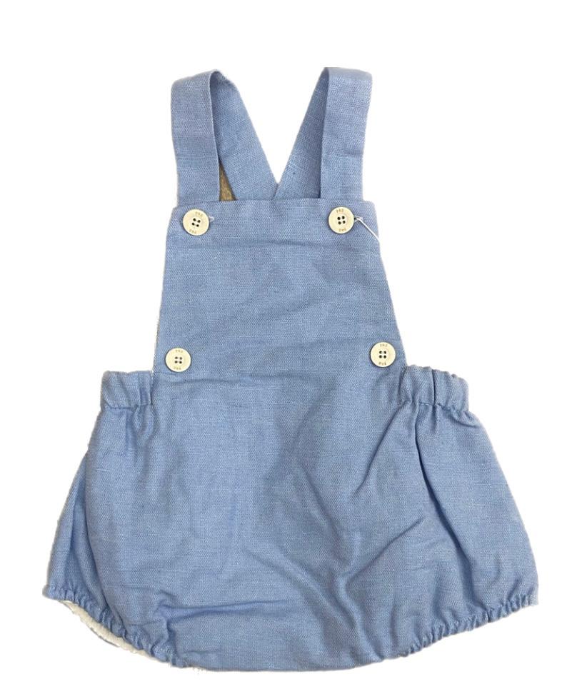 Salopette in cotone e lino colore blu denim con bottoncini bianchi