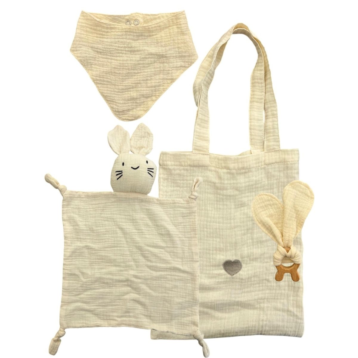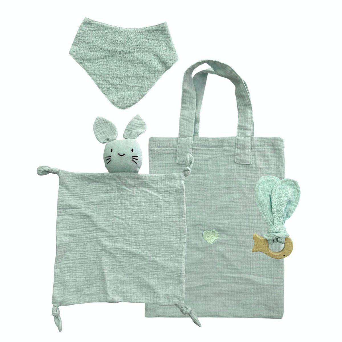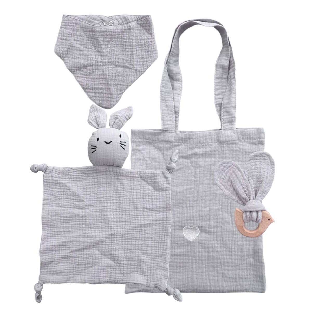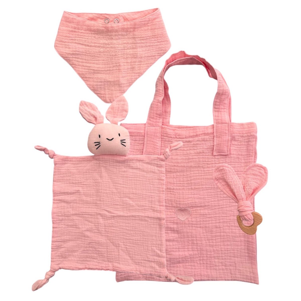 Set borsa, dou dou, bavetta e anello dentizione in legno massaggiagengive