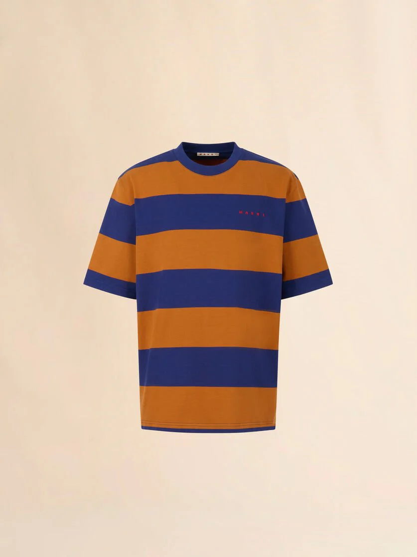 T-shirt a maxi righe blu e arancioni