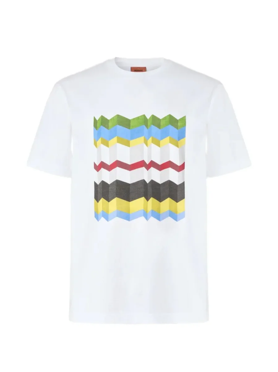 T-shirt con stampa Caratteristichebiancostampa graficagirocollomaniche corteL’articolo potrebbe differire leggermente dall’immagine. Ciรฒ accade perchรฉ i prodotti Missoni sono realizzati artigianalmente.Composizionecotone 100% Istruzioni per il lavaggioLavare in lavatrice