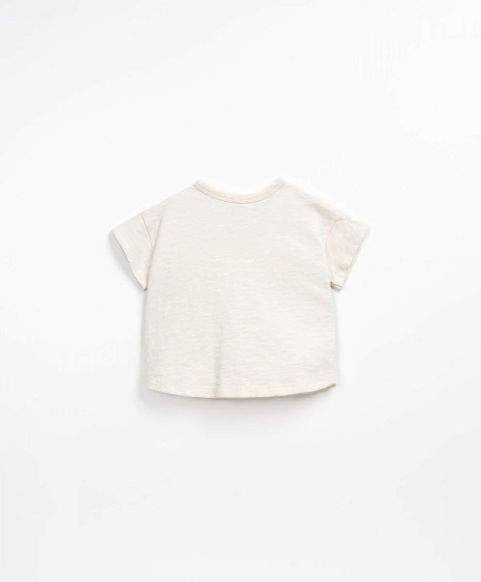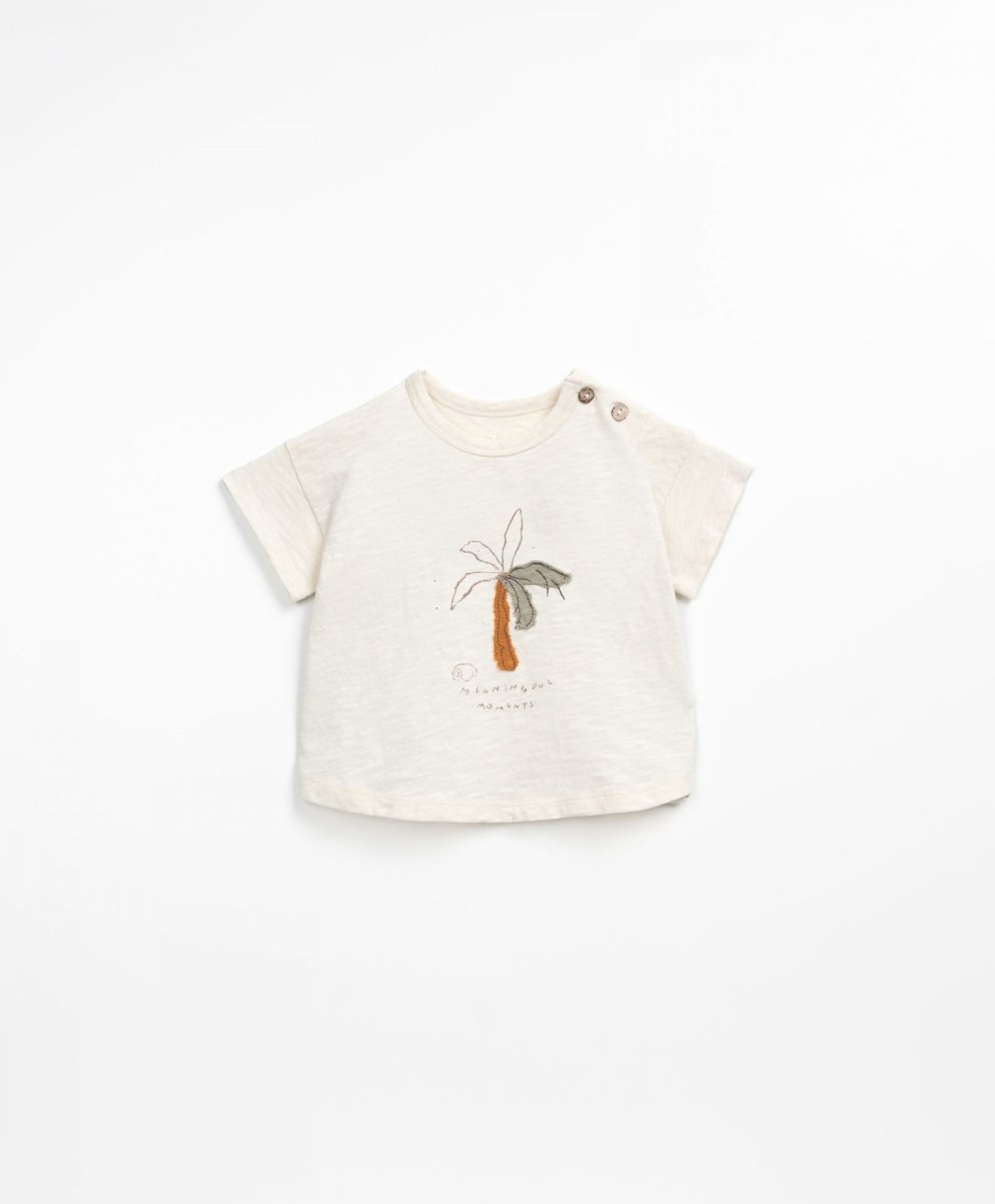 T-shirt in cotone organico con stampa palma sul davanti con bottoncini in cocco