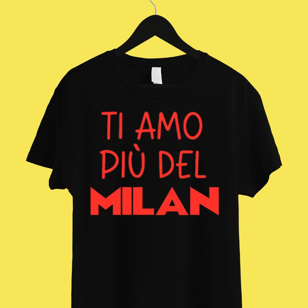 Acquista ora la t-shirt “Ti Amo Piรน del Milan” e regala un sorriso (e tanto amore) a chi riesce a rubarti il cuore anche piรน della tua squadra del cuore!