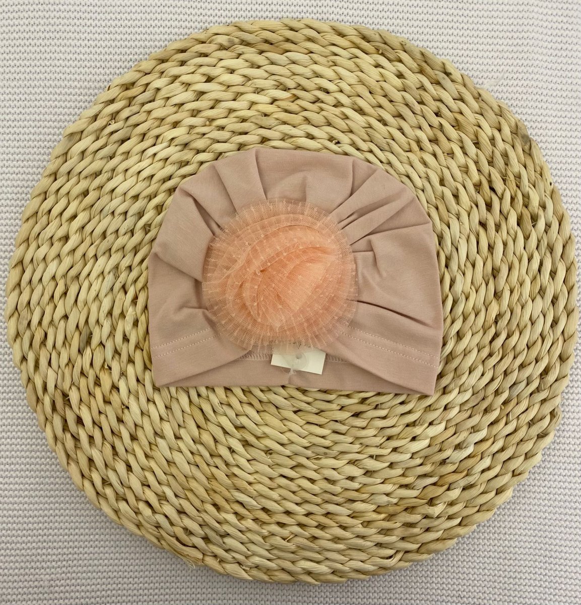Turbante in cotone con fiore tulle