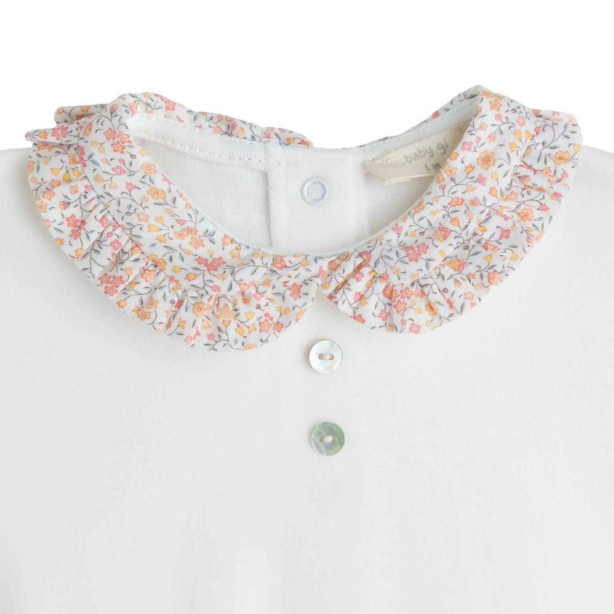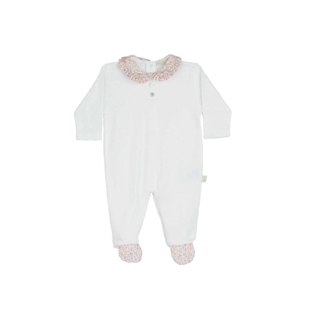 Tutina intera con piedino, 100% cotone, colore pnna con colletto e piedini a stampa floreale, bottoncini applicati sul davanti, abbottonatura posteriore