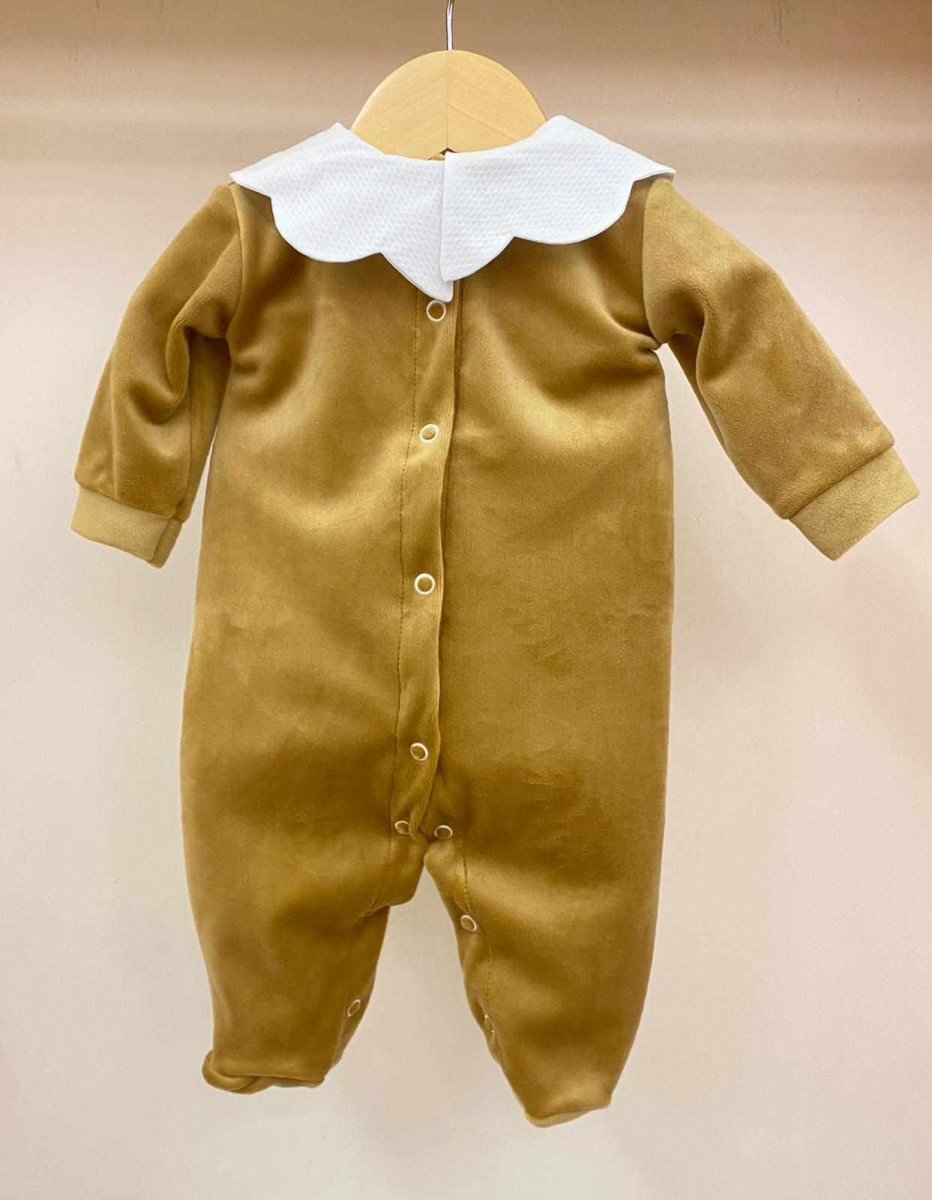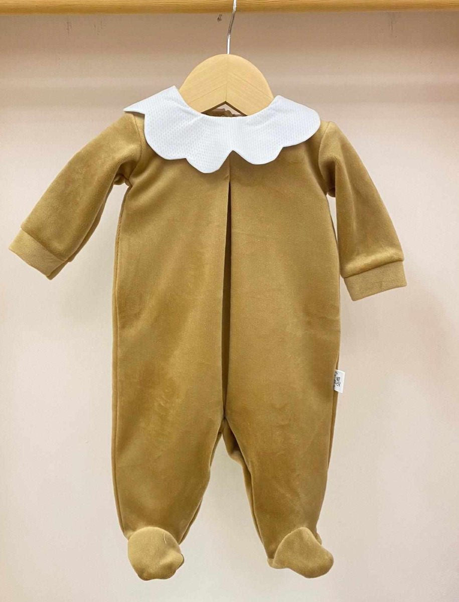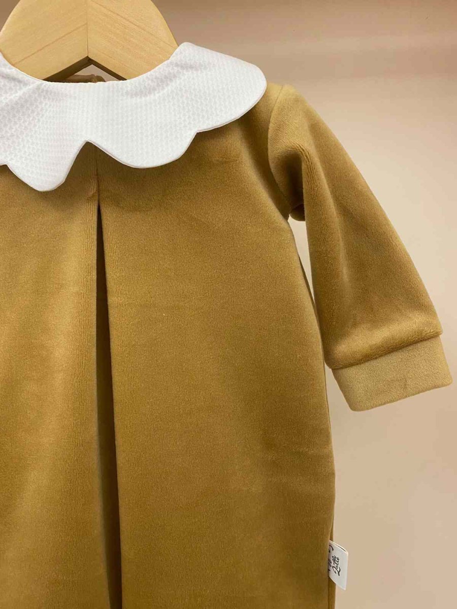 Tutina intera in ciniglia colore biscotto con colletto a forma di petalo