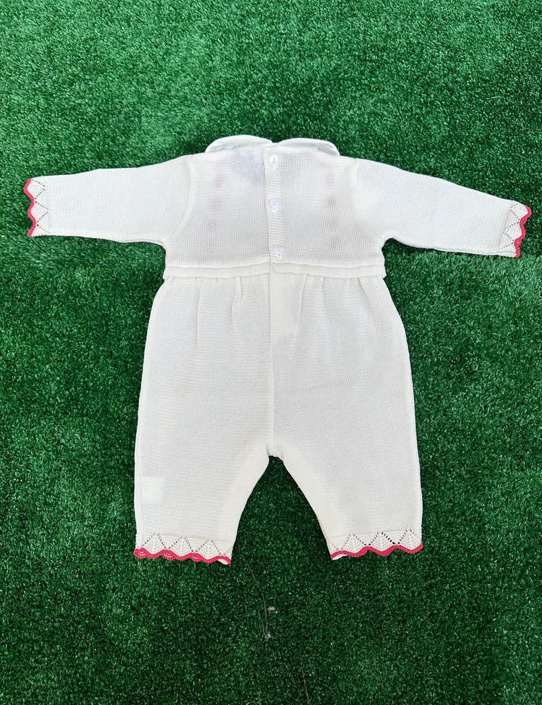Tutina intera senza piedino in filo di scozia con fiocco e ricami color corallo