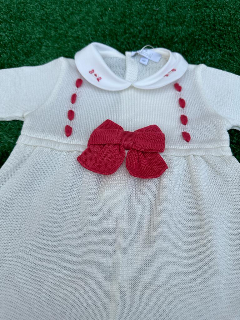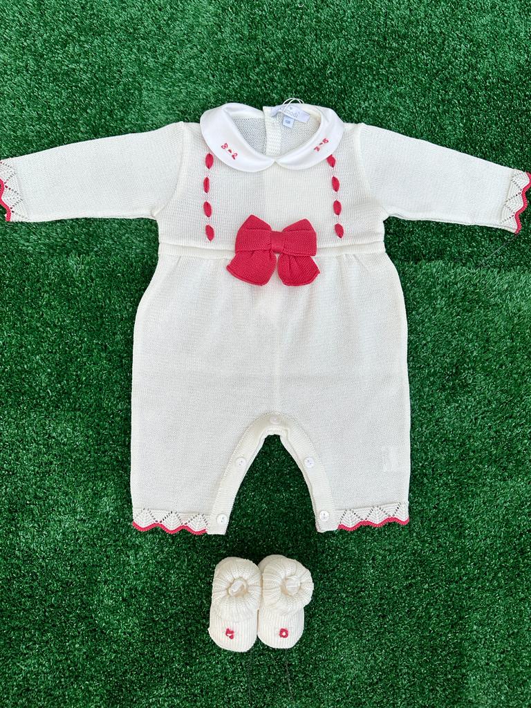Tutina intera in filo di scozia Primodì con fiocco corallo