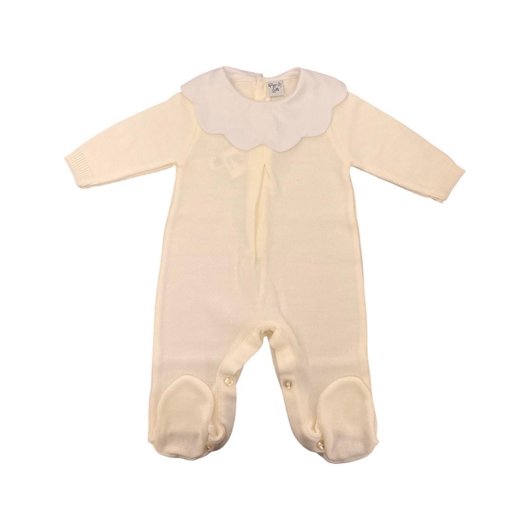 Tutina in misto lana colore panna con collo a forma di nuvola colore bianco