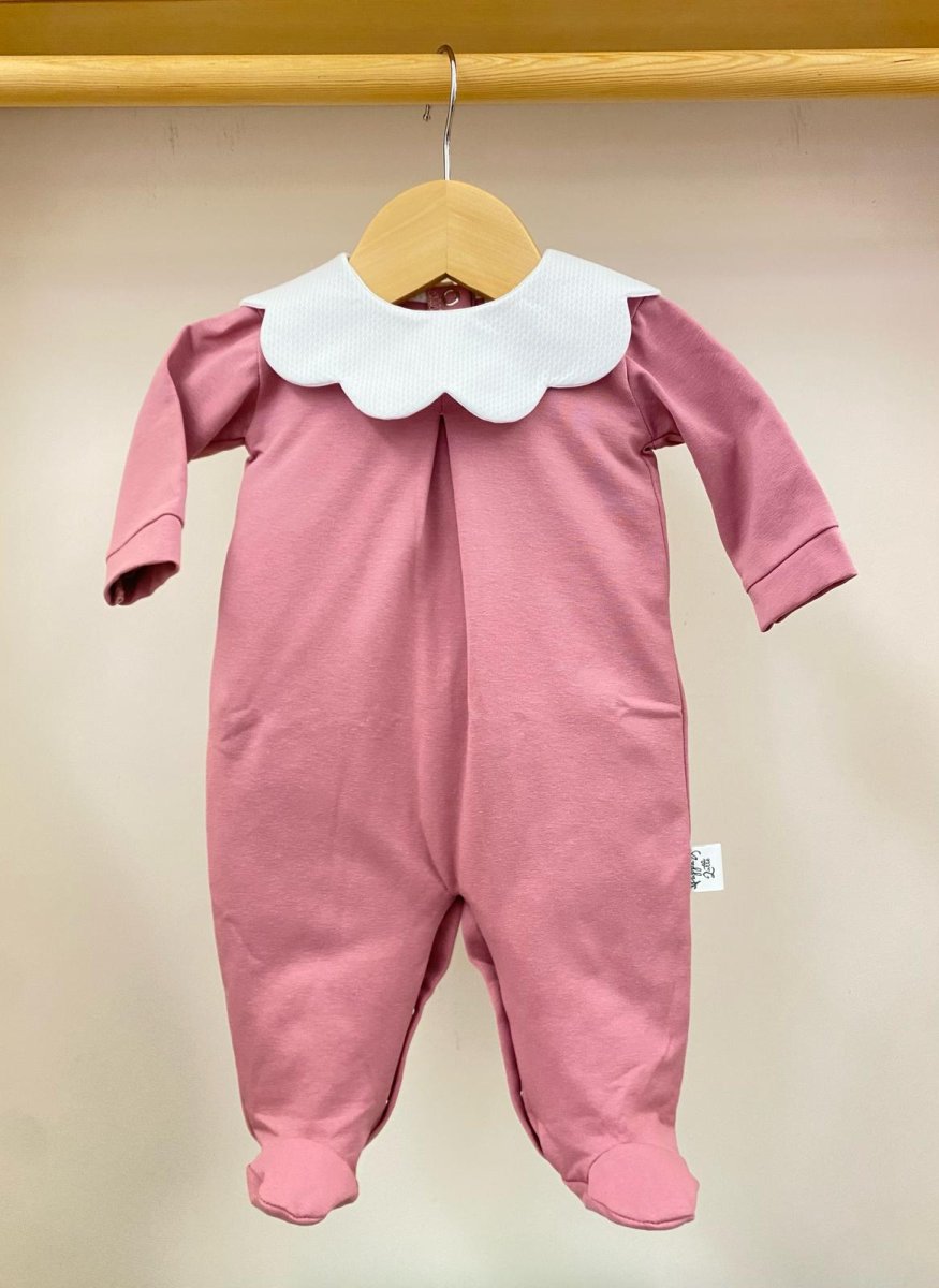 Tutina in cotone rosa cipolla, con colletto bianco a forma di nuvola e piega baciata sul davanti, Pappa e Latte