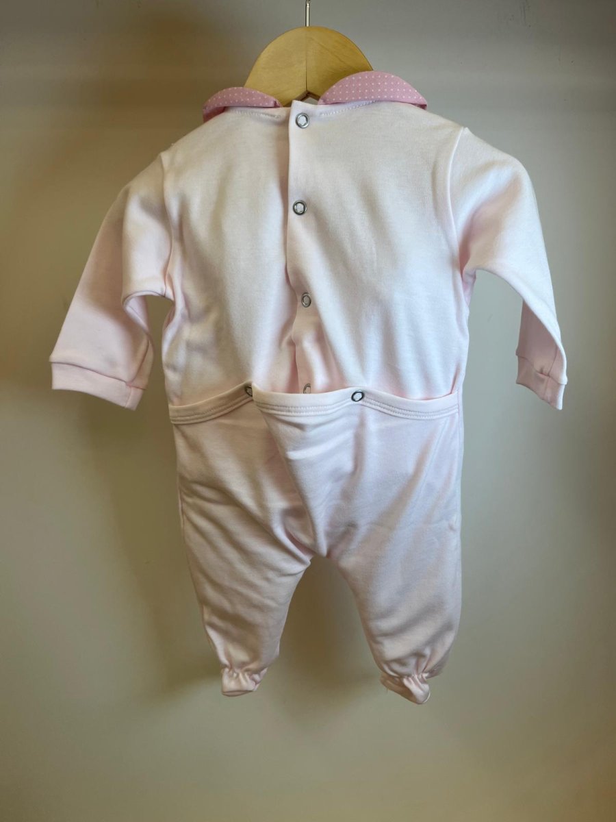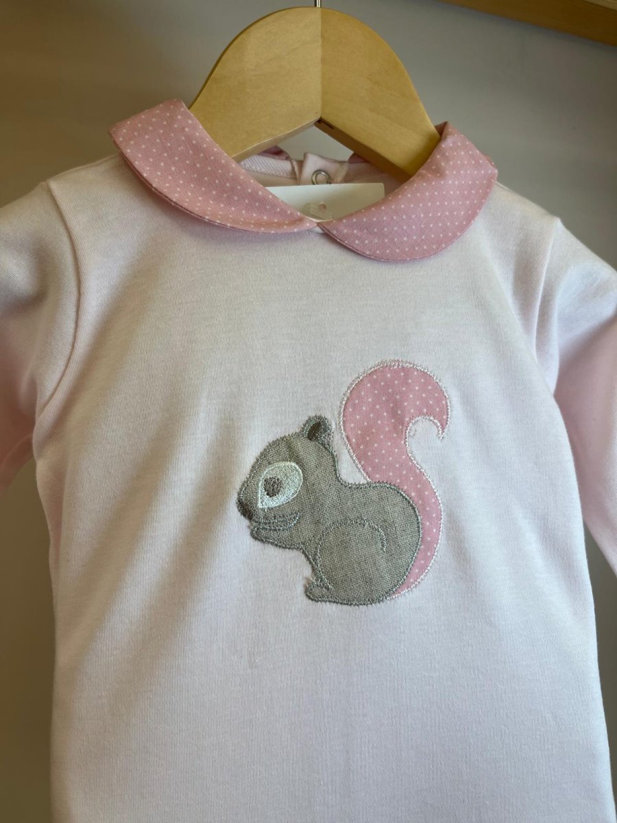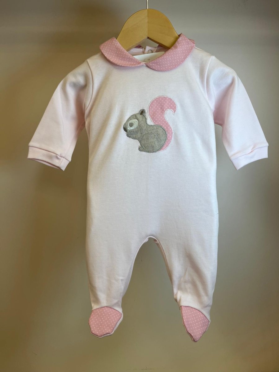 Tutina intera rosa in cotone, con colletto, scoiattolo tortora