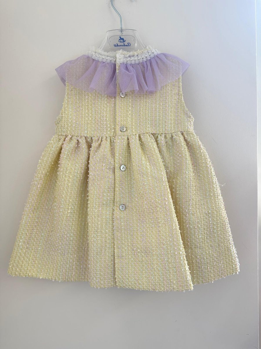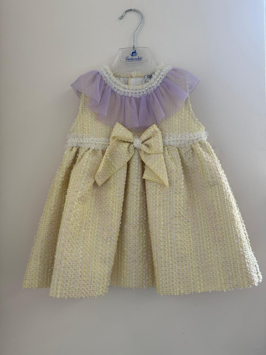 Vestito jacquard con fiocco sul davanti e colletto in tulle