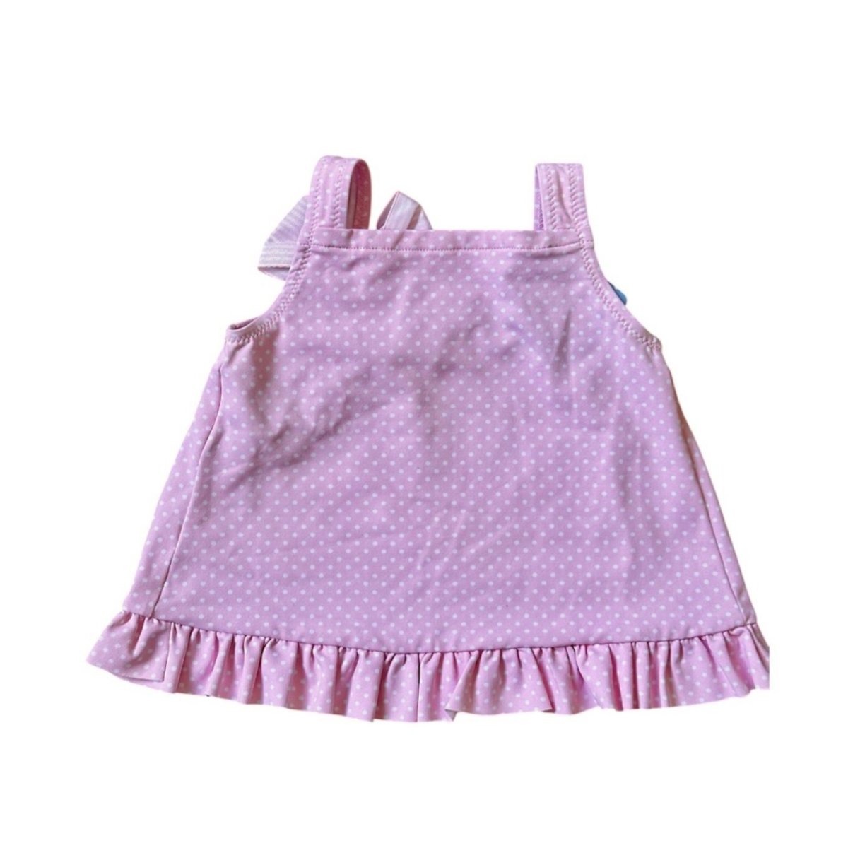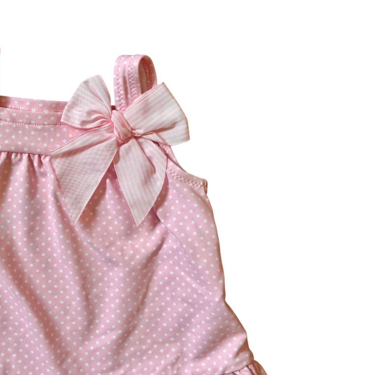 Vestito mare colore rosa con pois bianchi e applicazione fiocco rigato