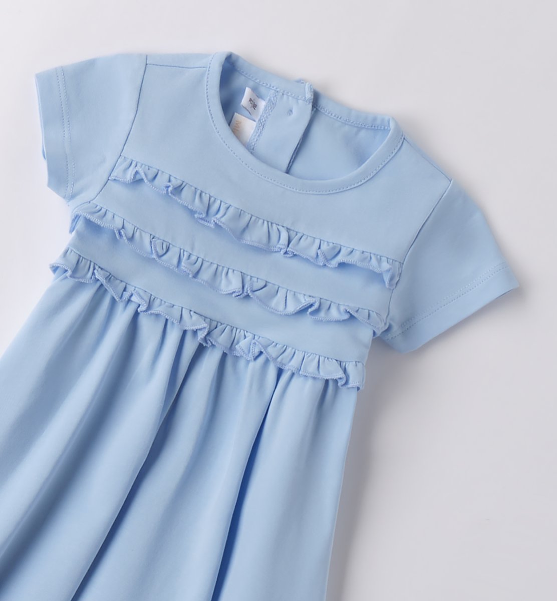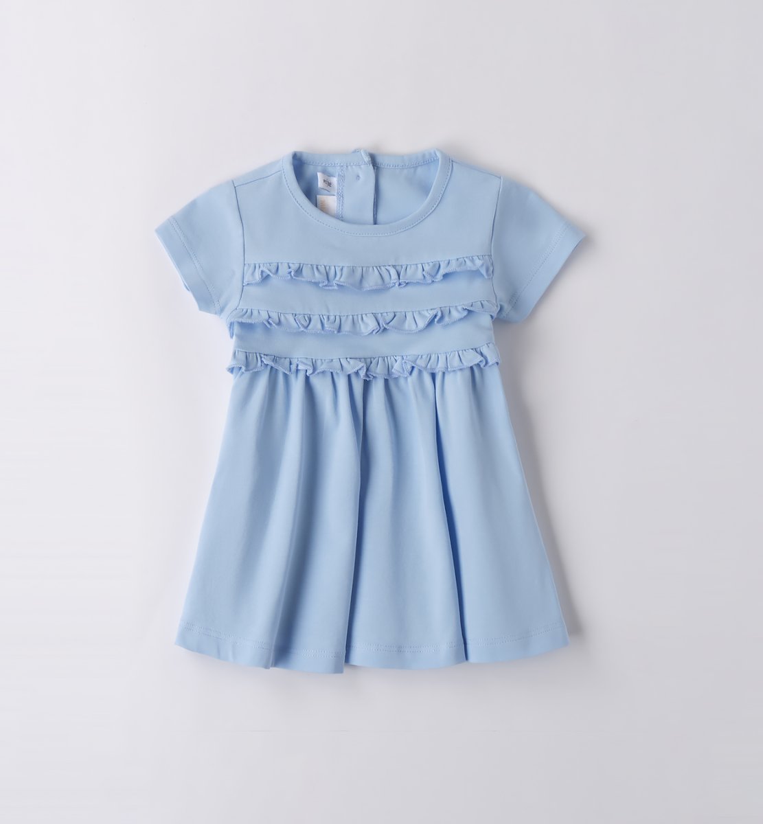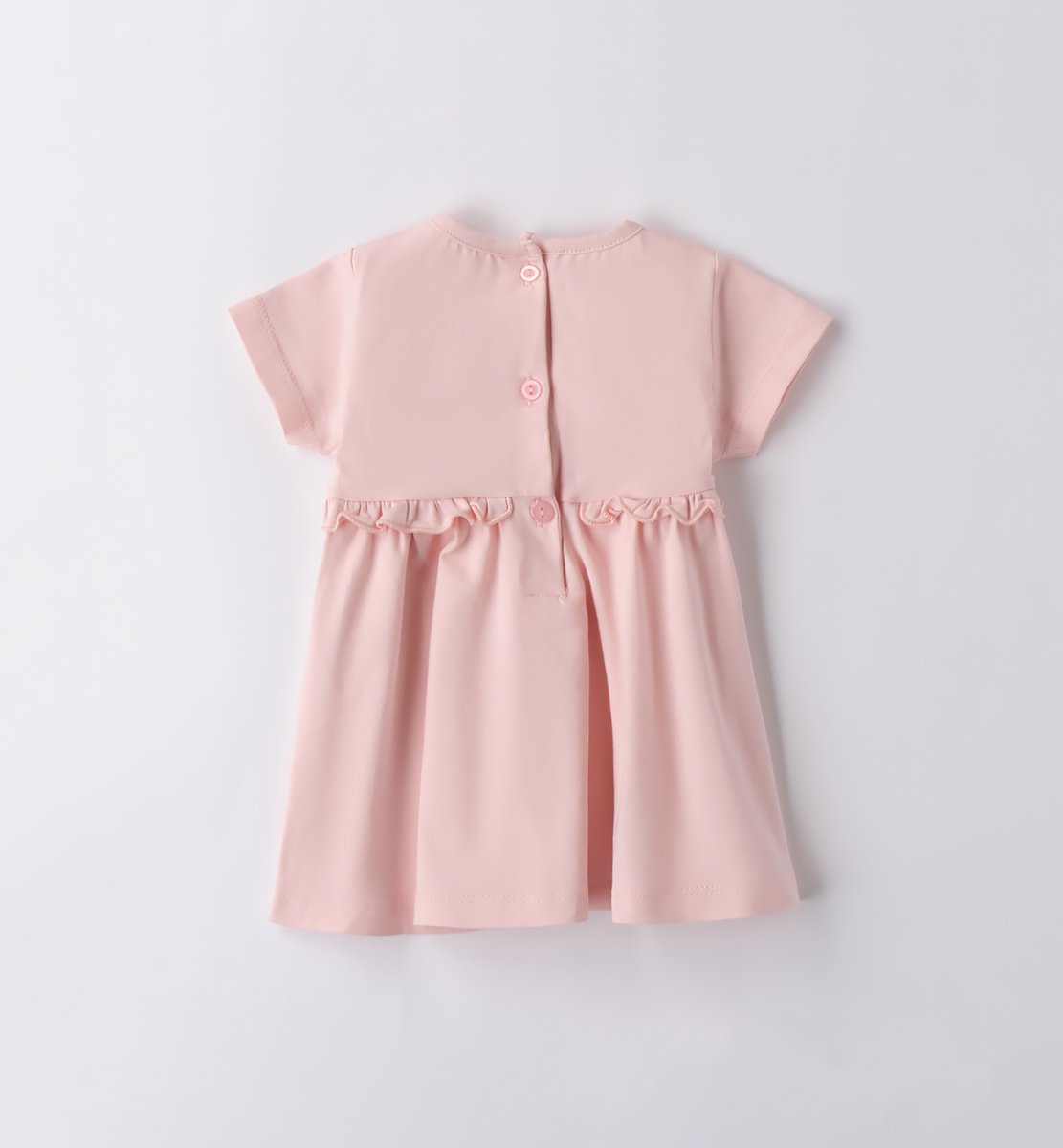 Vestito a mezza manica con ruches sulla parte superiore e chiusura bottoncini sulla parte posteriore