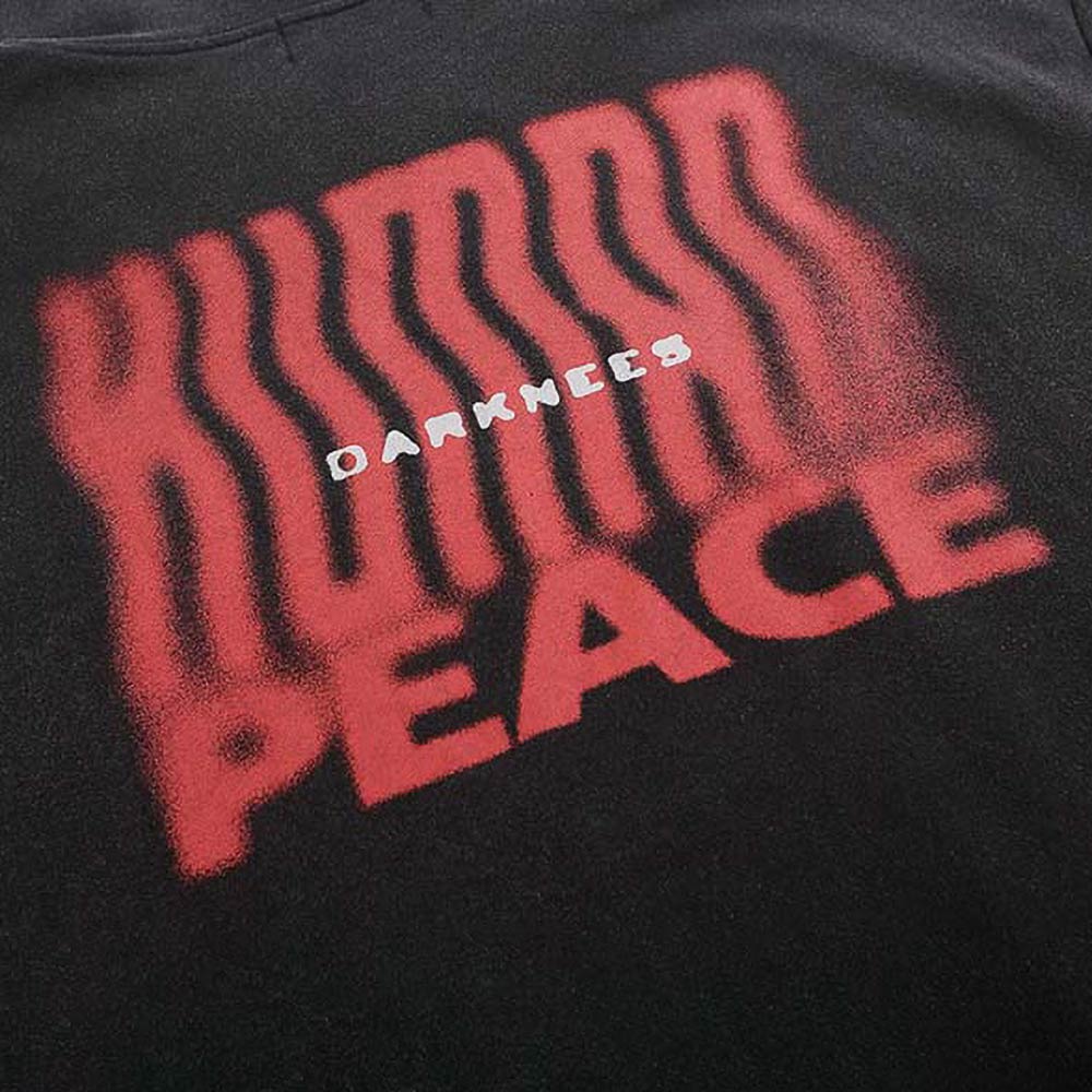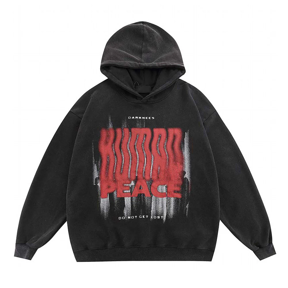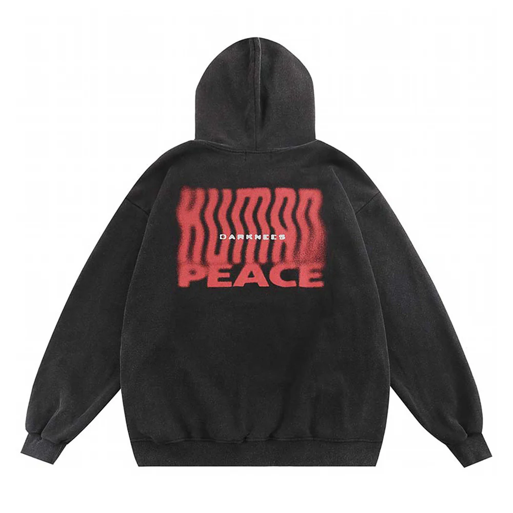 Washed Black Hoodie “Human Peace” – Trendy Hip Hop Streetwear